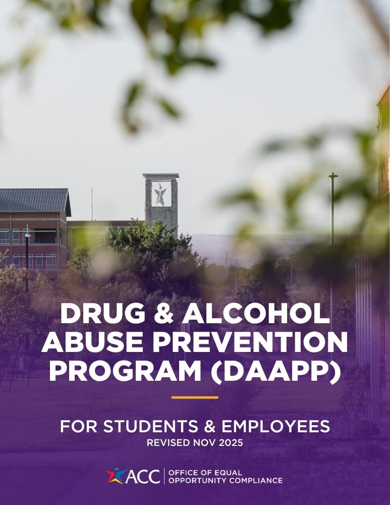 ACC has adopted and implemented a drug and alcohol abuse prevention program (DAAPP) to prevent the unlawful possession, use, or distribution of illicit drugs and alcohol by all students and employees on ACC property or as part of any of its activities. The DAAPP contains:
